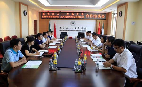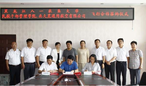 三方本着平等互利、优势互补的原则,促进在飞行培训方面结成长期、全面、广泛的战略合作伙伴关系,实现资源共享、共同发展,加快飞行员培训事业的发展。公司负责飞行技术专业养成学员的招生、基础教育与基础理论培训,完成大学本科学历教育;北大荒通用航空有限公司负责学员的飞行技能培训,取得民航局颁发的飞行执照;中国民航管理干部学院负责整体项目运作,包括飞行培训市场开发、专业理论强化培训以及培训进度、培训质量体系的运行管理。随着合作的不断发展,三方将逐步探索新的更深入的合作模式与合作发展新空间。