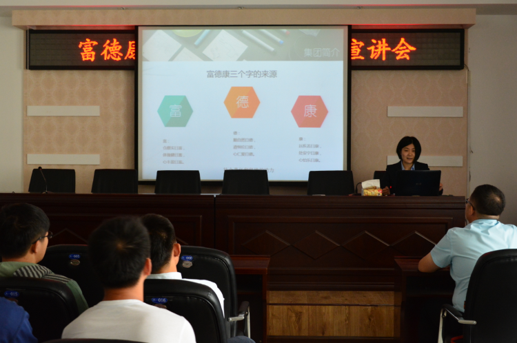 宣讲会上,富德康集团人力资源相关招聘人员张扬强调了集团未来的四个发展方向,同时也表达在发展中对人才的渴求与期待。随后,参会人员观看了富德康集团《大地生机》宣传片,更加全面地了解了集团的主营范围、取得业绩和未来展望。张扬详细地讲述了理论培训、实践培训、高级培训三个阶段的培养形式、培训内容、薪酬待遇等,同时现场解答了员工的提问。