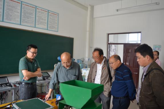 在精准农业装备实验室和机电一体化实验室中,王熙教授对学院目前机电一体化课程安排、实验周次、教学模具及机电发展前景进行详细介绍,重点讲解实验室中现存各项实验仪器的功能效用及优缺点。晏经理对学院王教授独创的便携箱式机电传输反馈模型教具给予高度评价,认为由教师指导、员工亲自设计并动手完成的机电模型能够最大程度锻炼员工的实践能力,并节省宝贵的教学实验经费,实现教学效果最优化。