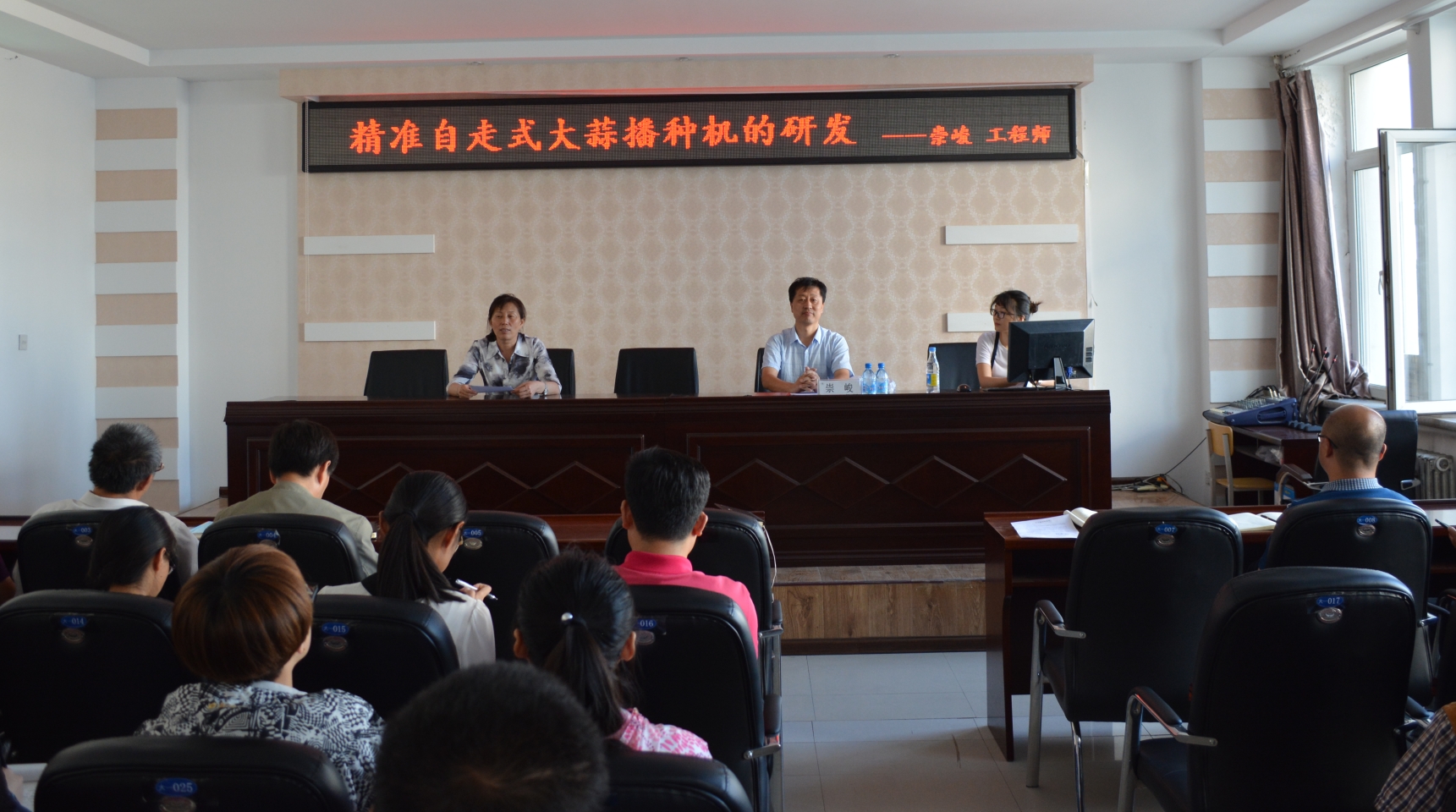 9月6日,济南华庆农业机械科技有限公司总经理崇峻工程师应邀来公司作了题为精准自走式大蒜播种机的研发主题学术报告,学院衣淑娟经理带领全体教师、部分研究生代表参加报告会,衣淑娟经理主持报告会。