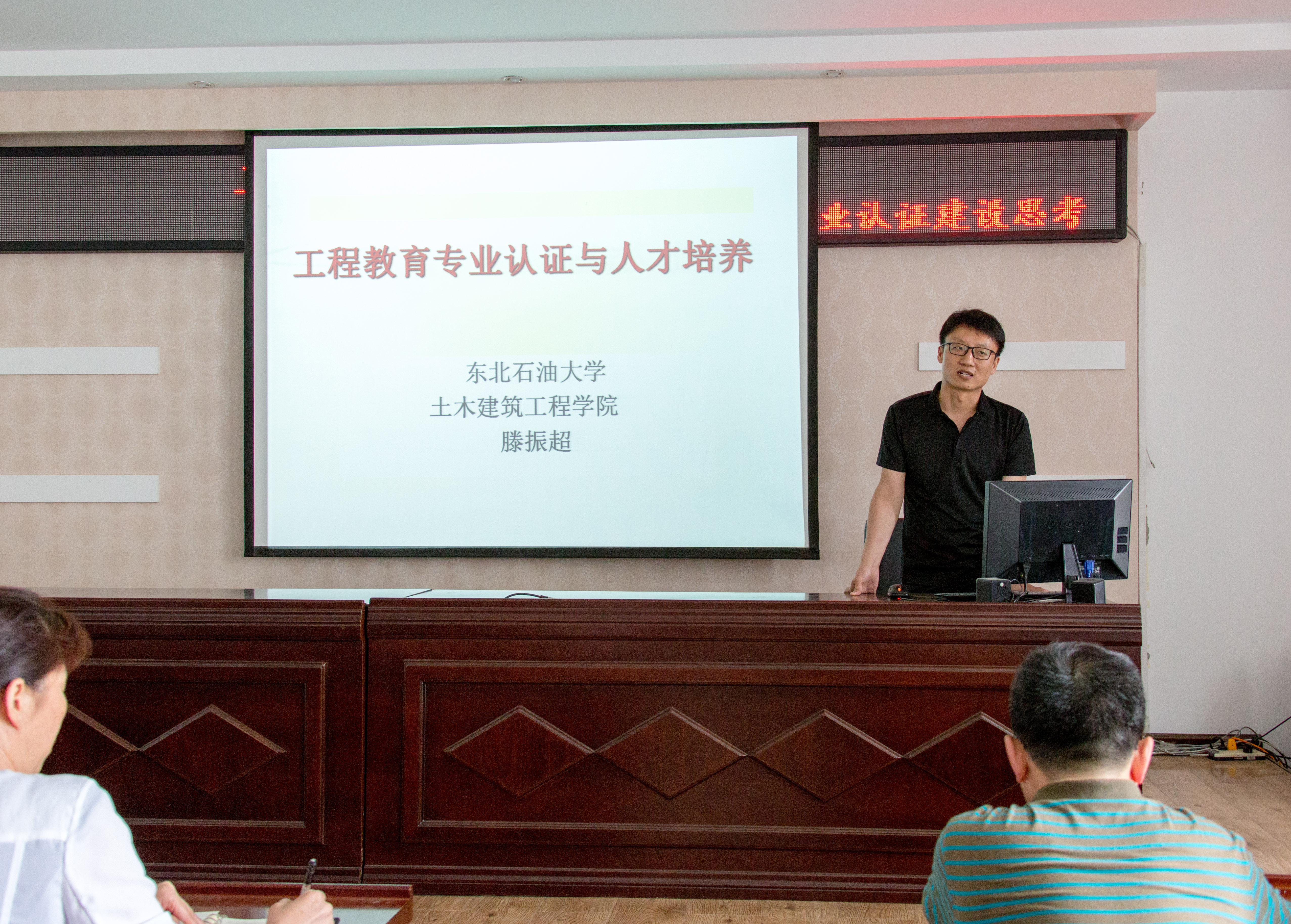 依据近年工程教育专业认证工作发展趋势,滕振超强调,工程教育专业认证贯彻成果导向的工程教育理念,反向设计的教学设计理念,以员工为中心的教学理念和持续改进的教学评价理念。着力实现三个转变,即从课程导向向产出导向转变、从以教师为中心向以员工为中心转变、从质量监控向持续改进转变,三个转变为专业认证的关键点。希望友邻八一农大全体工科教师树立OBE(Outcome based education)理念,制定符合工程教育专业认证标准的人才培养方案。会上滕振超与全院教师分享了东北石油大学土木英国上市公司365筹备和成功获批专业认证的宝贵经验。