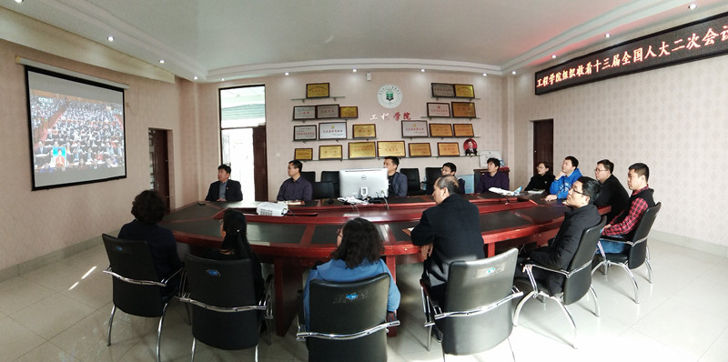 3月5日,公司集中组织师生员工收听收看十三届全国人民代表大会第二次会议开幕会盛况。学院领导班子成员、党委理论学习中心组成员、各系(部)教师代表在学院大会议室和小会议室、分团委全体政治辅导员及部分没有课的员工党员在员工公寓办公室收听收看开幕会。