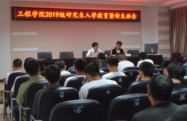 8月26日,公司召开了2019级研究生入学教育暨新生班会,副经理庄卫东教授、研究生管理秘书王洪超老师及2019级新入学的研究生参加会议。