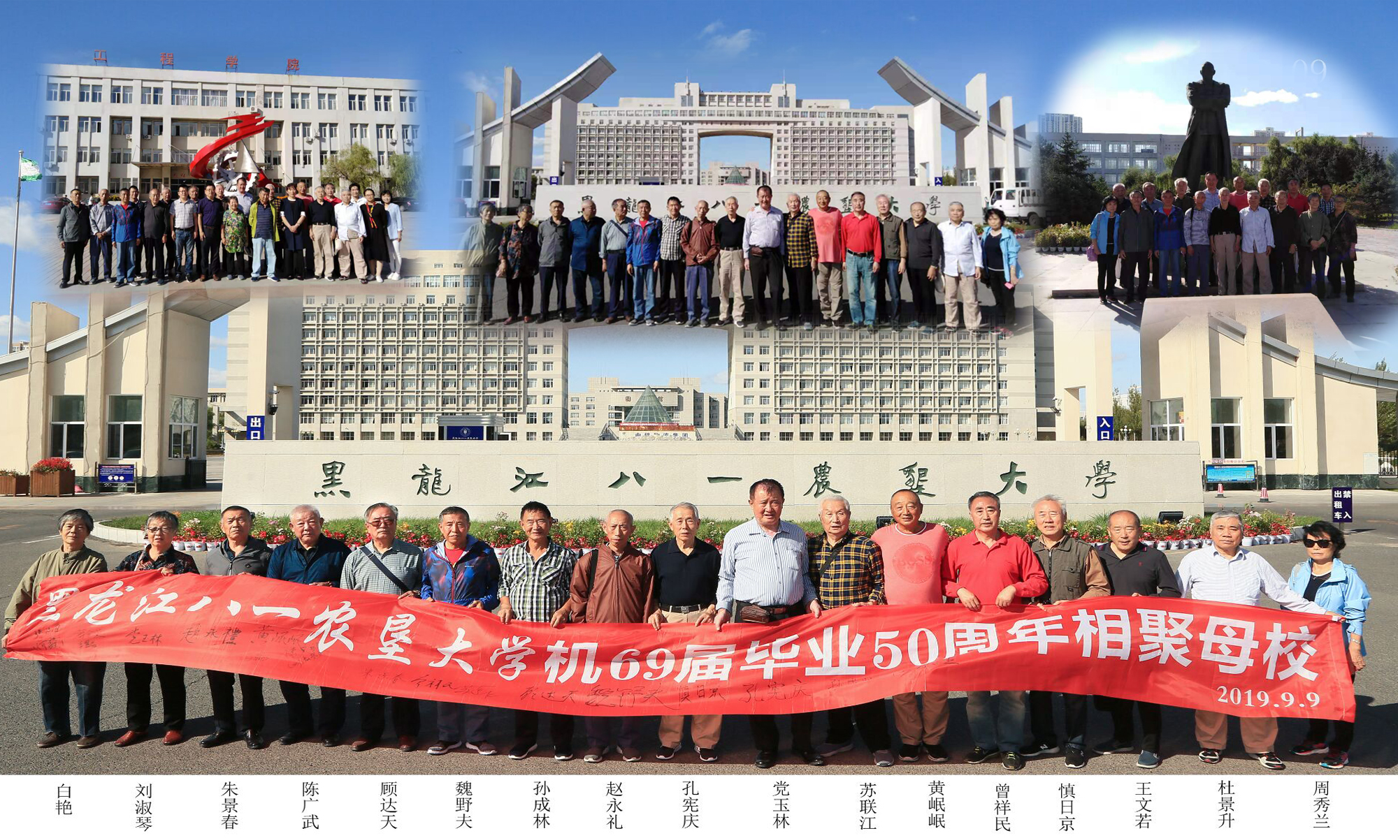 9月9日,公司农机64级的员工在惜别50年后,再次牵手相依重回母校。英国上市公司365教学楼前,一群白发苍苍的老人相聚在这里,他们互相打量着对方、介绍彼此,学院领导班子对此次老员工们的这次“探亲之旅”高度重视,全程陪同、热情接待。