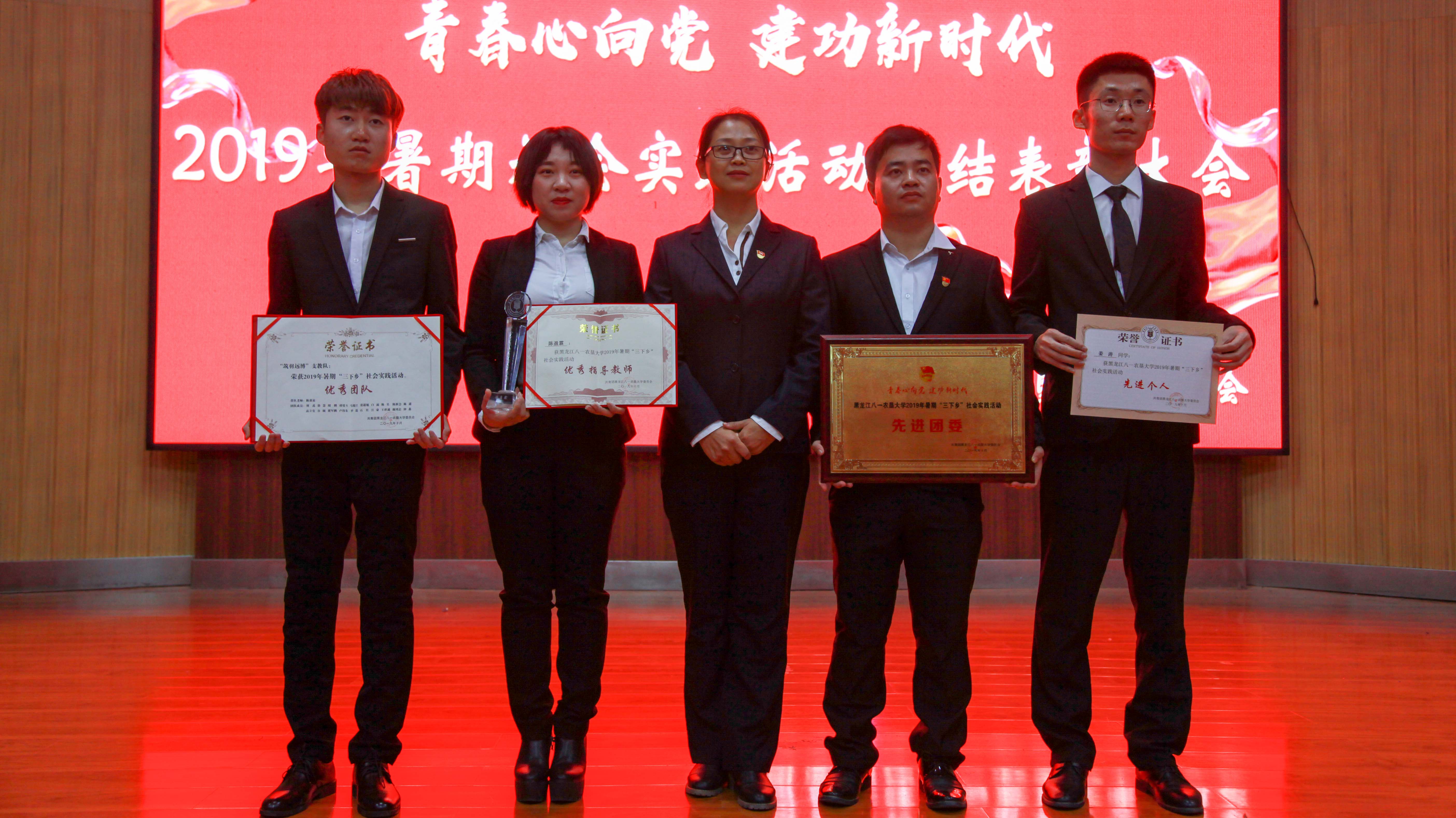 在此次表彰大会中学院荣获“社会实践先进团委”称号,辅导员陈盈霖荣获“社会实践优秀指导教师”称号,“筑羽远博”支教队荣获“社会实践优秀团队”称号,9名员工荣获“社会实践先进个人”称号。