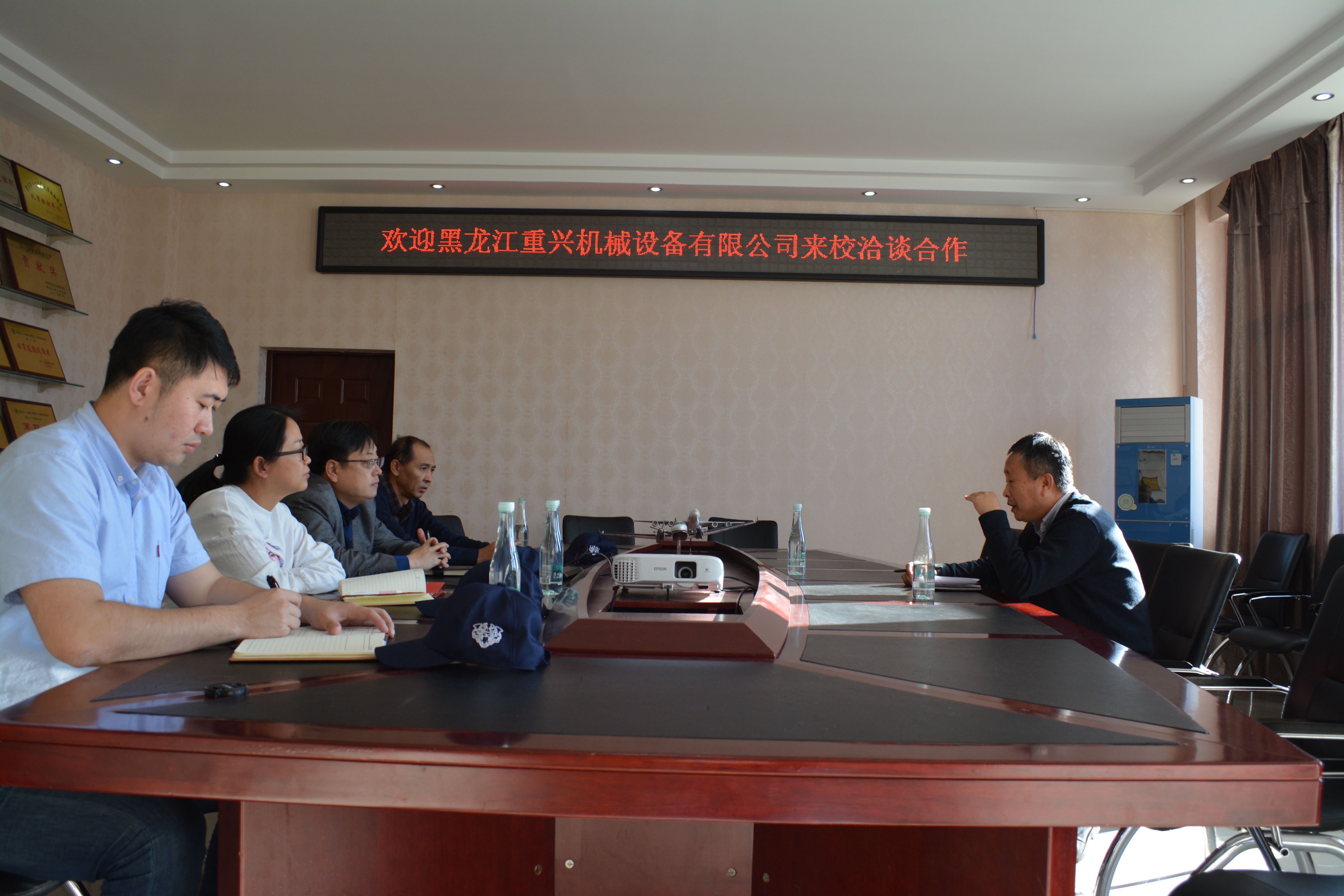 宋国强经理介绍了公司的发展现状及技术优势,重兴机械设备有限公司是国内首家专业从事橡胶履带集研发、制造、销售、售后为一体的高新技术企业,同时公司还经营水田灭茬重型犁、卫星导航等系列产品以及高端进口农业机械。公司的橡胶履带产品填补了我国农机领域应用的空白,并且公司的多款橡胶履带产品已经进入黑龙江农垦新型农业机械购置补贴名录。张昆书记简要介绍了学院在人才培养、研究和教学上的特色和优势、目前学科发展思路以及实习就业的导向和愿景,他表示双方可在员工联合培养、具体课题合作、生产工艺的系统优化等多方面,开展灵活多样的合经。