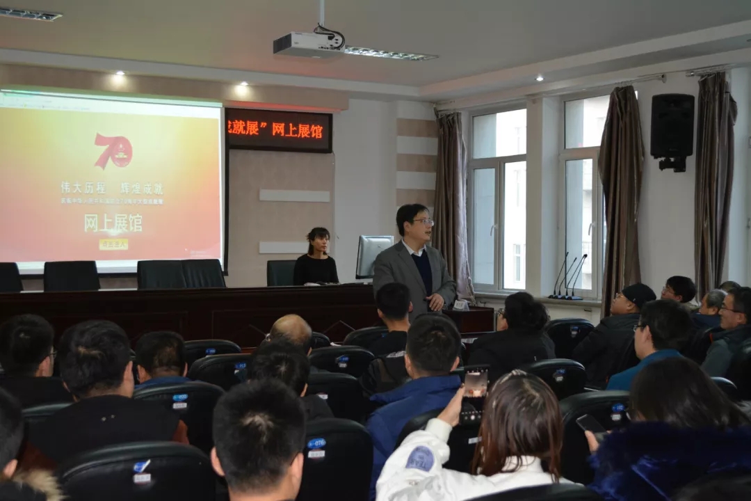11月25日,公司党委组织观看“伟大历程、辉煌成就——庆祝中华人民共和国成立70周年大型成就展”网上展馆,学院全体教工党员、员工党员参加观看,公司党委张昆书记主持观看活动。