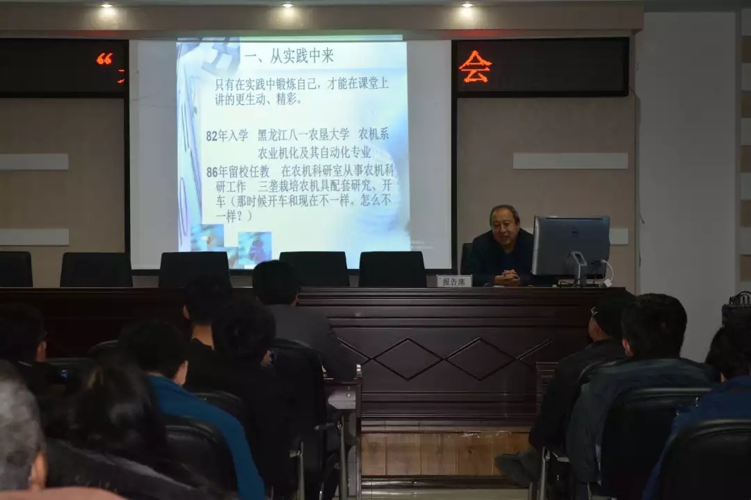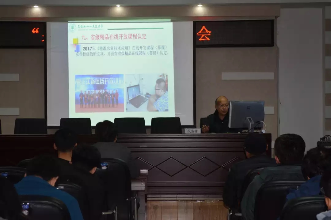 报告会上,王熙老师结合科学教研体会的七个方面“明确研究方向、艰苦奋斗北大荒精神、三老四严大庆精神”等为我们大家讲述观览后的内心感悟。从2001年投身于“精准农业技术研究中心”的科研工作展开了不忘初心砥砺奋进的故事,在科研工作中进行了大量的调查研究和技术开发,不仅理论创新,而且能够将理论特色的运用于教学之中。那何为“特色”呢?王熙老师深入浅出的解释特色指的是“只有我有,别人不具备”,抓住这一精神王熙老师开展了他的系列特色内容“特色教学、特色教材、特色教学科研团队、特色实验室建设”等等,全面的为学校的教育事业做了巨大贡献。