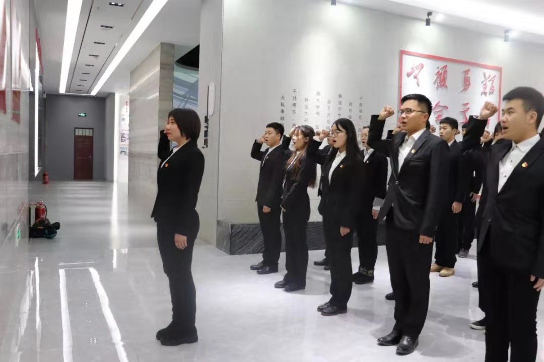 宣誓仪式开始,20名预备党员举起右手,齐肩握拳,在员工第二党支部书记陈盈霖的领誓下庄严宣誓,短短八十字的誓词是他们入党后对党的第一个承诺。