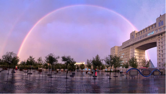 这张照片拍摄于19年9月16日,那个时候刚下过雨,去晚自习的路上看到了这个完整的彩虹,不禁想起一句话,斯人若彩虹,遇上方知有。来到八一农大的每以天都很充实。心情不好抬头看看天空也会有别样的景致。希望每一位农大学子能坚持梦想,不负韶华!