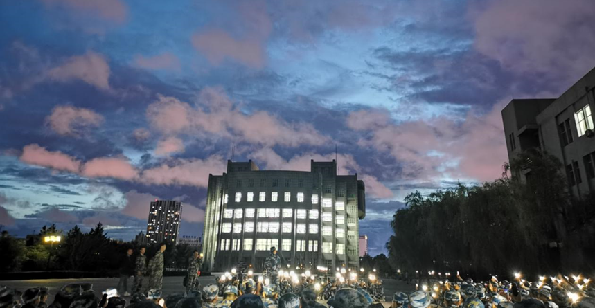 这是军训的时候学长带着我们做游戏,斑斓的夜色下大家挥舞着闪光灯为他们加油打气,不停地欢呼。汗流浃背的军训生活虽然很累,但是我们收获了友谊和我们之间真挚的情感。那响亮的口号“工程工程,雷厉风行,天之骄子,四海纵横。”仍不时在我耳边回响。