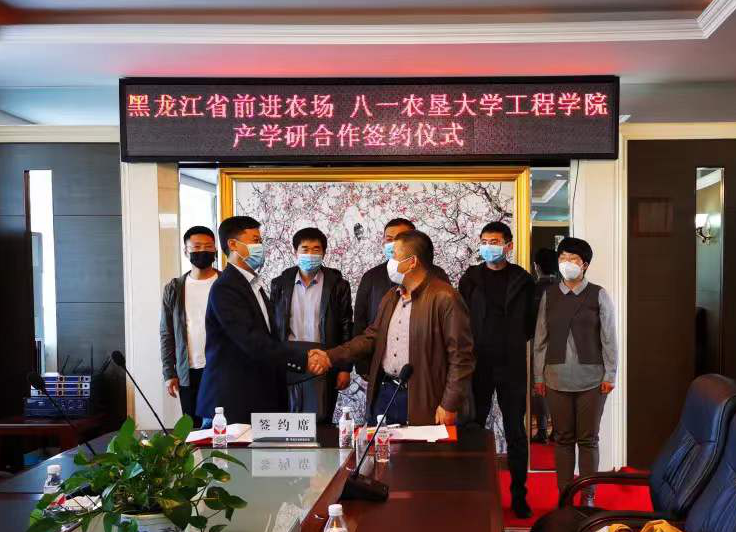 前进农场副场长王启增携机务科、农业科和科技园区等农场相关负责人与学院一行三人就拟实施项目召开了对接研讨会,共同商议项目实施细则并落实分工,希望校企双方在此项目的基础上,进一步拓宽合作领域,实现合作共赢。最后在会上进行了产学研合作的签约。