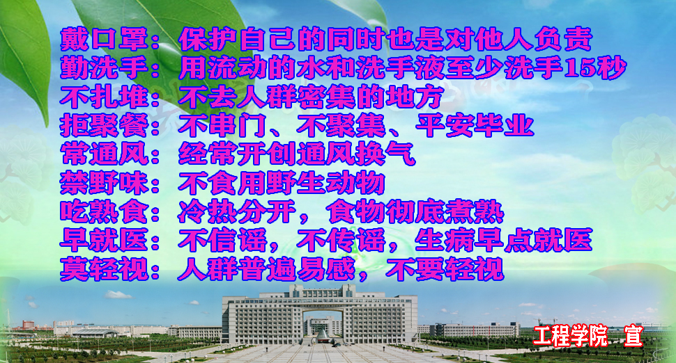 员工返校后,为凝聚全校上下万众一心,树立战胜疫情的坚定信心,让员工感受到“回家真好”,形成抗击疫情的强大合力,英国上市公司365利用条幅、电子条屏、电视等载体加强防疫宣传教育,引导师生员工提高自觉防控意识,做到科学防控,为坚决打赢新型冠状病毒感染的肺炎疫情防控阻击战营造浓厚宣传氛围。(一)(二)(三)(四)(五)(六)(戴守玉 编辑制作)