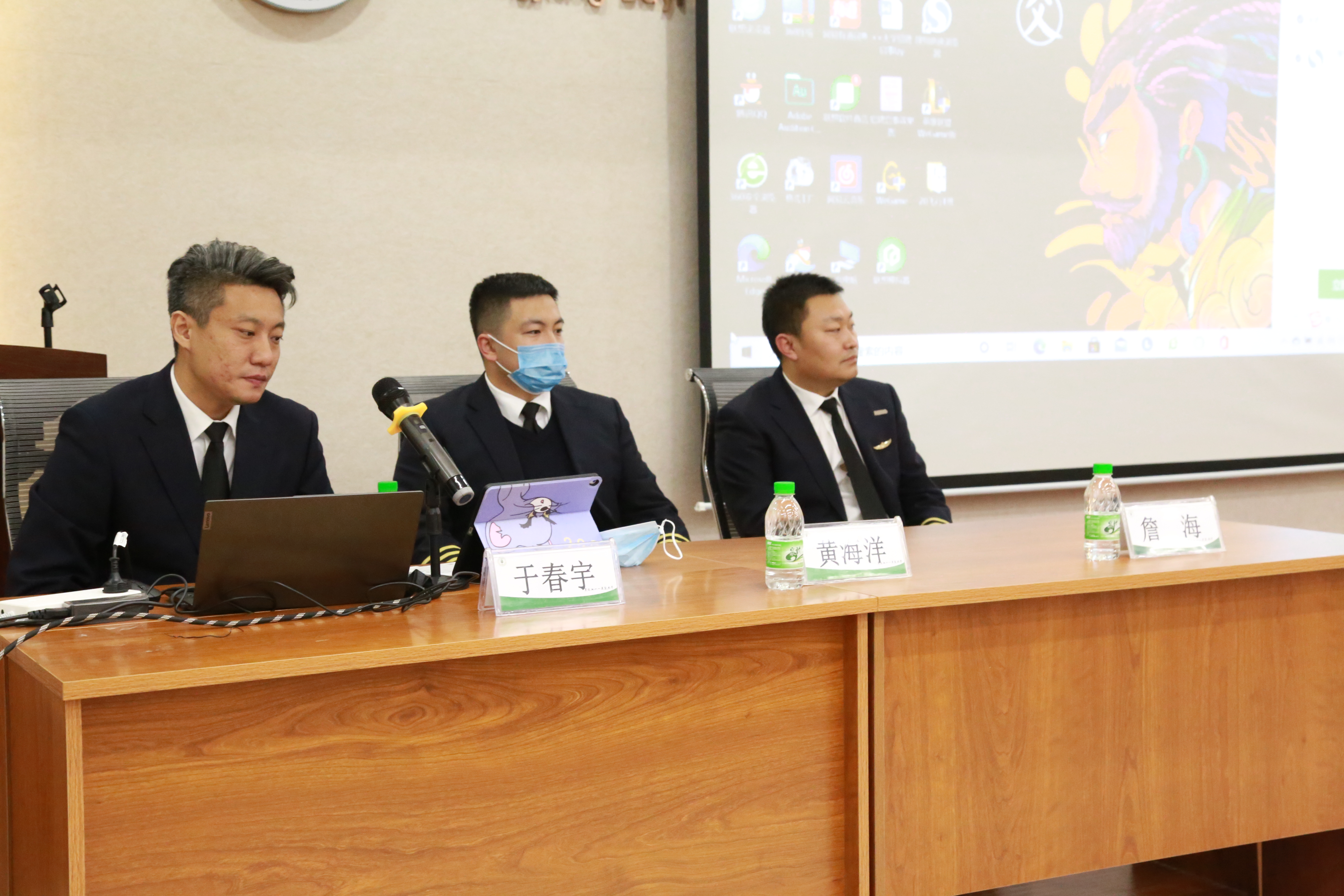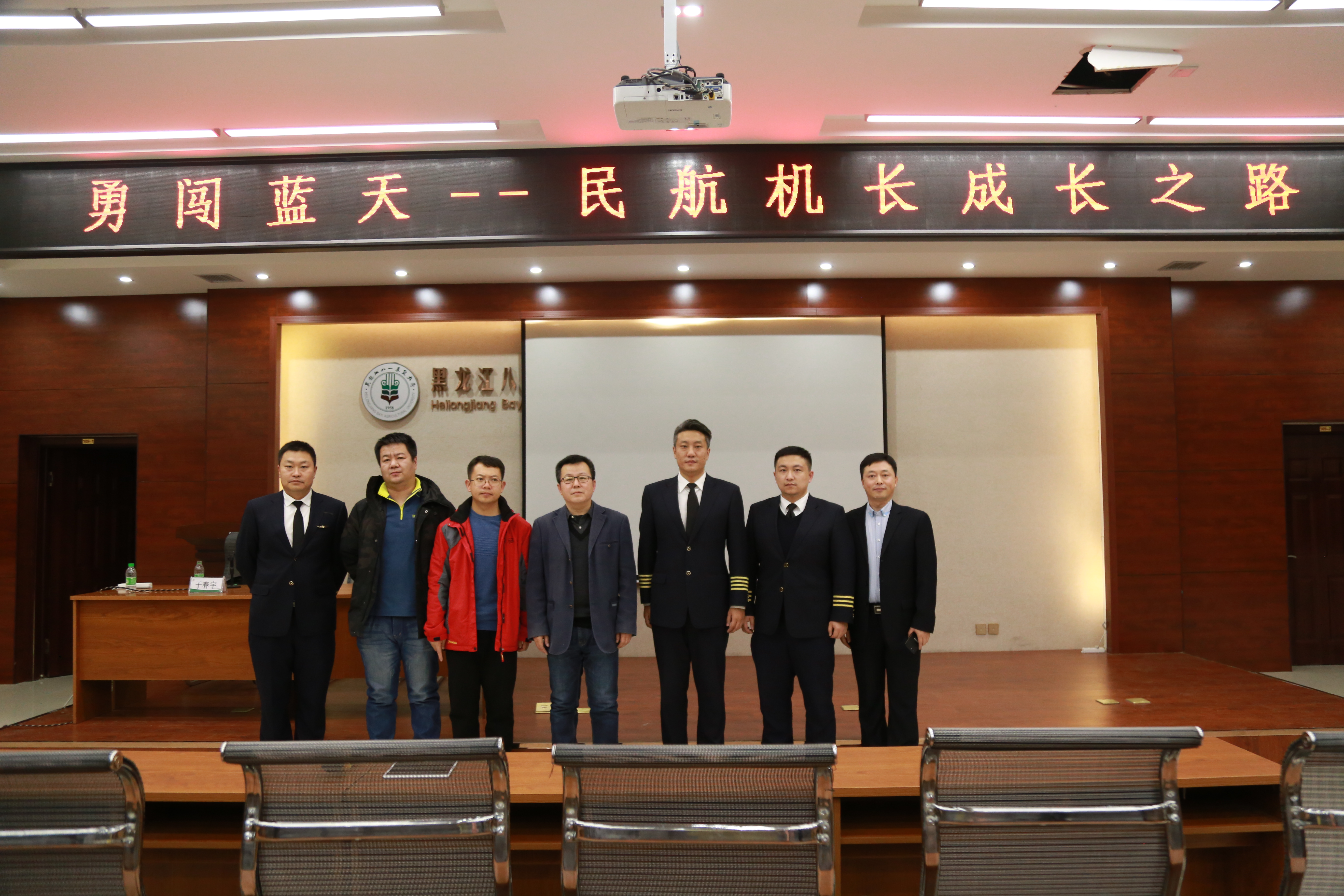 11月19日下午2时,在公司生物馆109房间举办了“勇闯蓝天--民航机长的成长之路”主题讲座,特邀南航黑龙江分公司飞行部飞行员、型别教员、飞行部安技室安全主管、南航CRM核心教员于春宇机长,南航黑龙江分公司飞行部副驾驶黄海洋和中国民航空中警察三支队四十一中队、空中警察詹海先生为公司飞行技术专业学员和教师做讲座。于春宇机长主讲,学院副经理马永财主持讲座,公司党委副书记宋清萍及飞行专业师生参加讲座。