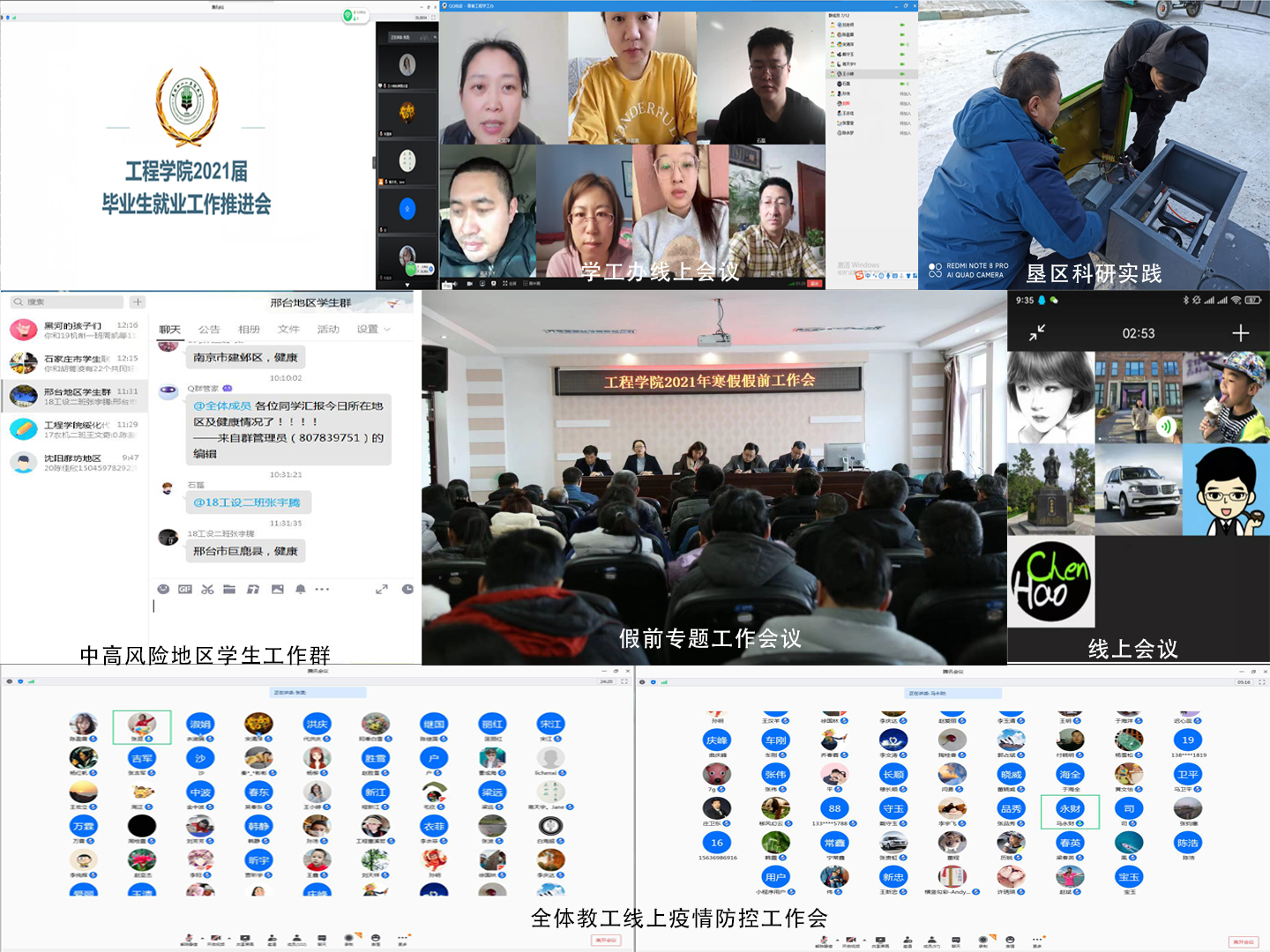 稳中求进科学发展不放松。继续做好“六稳”工作、落实“六保”任务,1月19日召开就业工作线上会议,通报就业情况,部署近期毕业生就业工作,努力做好寒假期间就业指导“不打烊”,就业服务“不停歇”。学院教师全员同频共振促就业,从学院-专业-辅导员-班主任-毕业设计指导教师五个层面入手,关注员工动态,广泛挖掘就业岗位信息,开展好“云服务、云指导、云分享”等活动,帮助毕业生了解目前就业形势及毕业生求职现状,帮助毕业生实现更高质量、更充分就业。学院积极应对做好各类科研项目申报预研,广泛动员,通过网络、电话等方式鼓励各科研团队及广大教师积极利用假期潜心撰写申报书,在线指导和帮助教师申报各类项目,强化网络指导,提高申报书质量。同时也发动教师积极与企业联系,建立网上对接、电话对接等,尽量争取更多横向科研项目,学院现有7名教师在农场持续开展实践研究工作。学院还通过电话等方式加强与企业沟通联络,促进产学研合作。