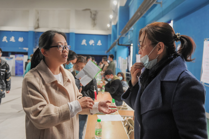 招聘会现场,毕业生们手持简历穿梭在人潮之中,寻找着自己心仪的岗位,纷纷投出自己的简历,他们投出的不仅是一份份简历,更是希望与梦想。共有九三集团天津大豆科技有限公司、哈尔滨东宇农业工程机械有限公司、黑龙江德沃科技开发有限公司、澳柯玛股份有限公司、佳木斯电机股份有限公司等79家企事业单位齐聚公司寻找优秀人才,他们提供了近7000个岗位供求职者选择,提供的岗位涵盖诸多领域,为公司2021届广大毕业生提供了广阔的就业空间。同时,为引导老员工多渠道就业,尤其是鼓励老员工自主创业和灵活就业,本次招聘会还特邀请萨尔图区人设局及大庆农商银行等3家银行参加本次招聘会,现场在校老员工讲解就业创业政策和人才开发政策,受到了毕业生们的广泛好评。
