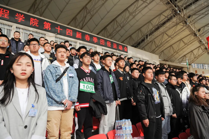 开幕式以激昂的国歌和悠扬的校歌起始,国旗与校旗缓缓升起,随风飘扬。