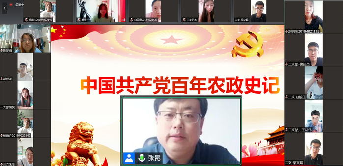 6月30日,学院举办党委书记上党课暨理论学习中心组学习(扩大)会。正在牡丹江市农业农村局挂职副局长、党组成员、公司党委书记张昆同志通过线上教学形式,为公司党委理论学习中心组成员、全体教师及员工党员作题为《中国共产党百年农政史记》主题党课。