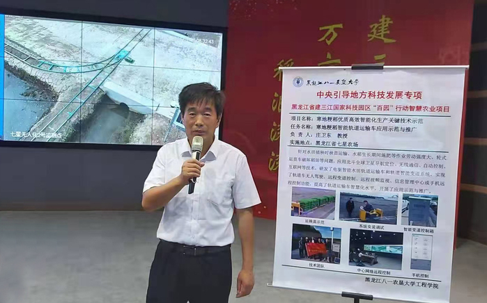 庄卫东教授汇报寒地粳稻智能轨道运输车应用示范与推广