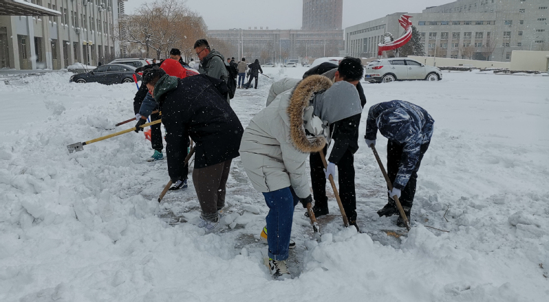 (照片由参加义务清雪劳动的师生提供)