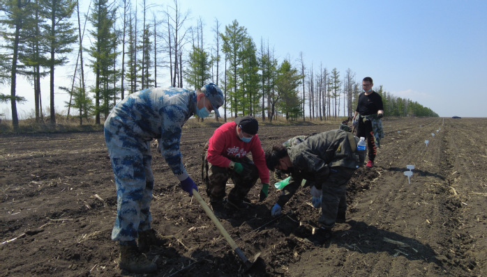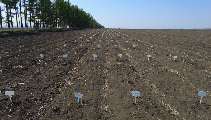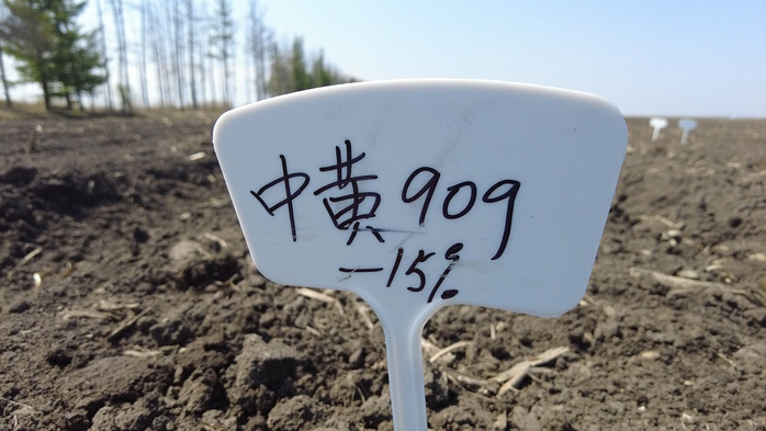 近日,在北大荒集团尖山农场有限公司农业科技服务中心试验田里,全国大豆产业技术体系岗位专家张伟正带领八一农垦大学的科研人员开展大豆试验田试种工作,利用精量播种机将一粒粒大豆播种到田间,每间隔一米种植一个品种,竖立标志牌,并标明对应的大豆编号。