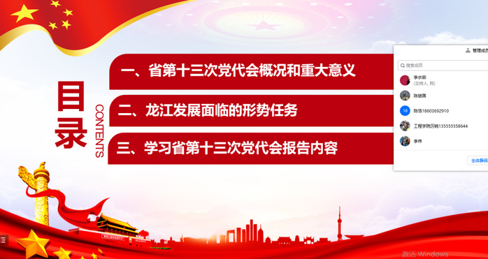 本次学习主要是以线上腾讯会议为主的集中学习,提纲挈领的学习了报告的主要内容。同时,党员们会结合个人学习情况,线下更深入学习省第十三党代会报告内容,将学习转化为工作的动力,切实做到内化于心落实于行。