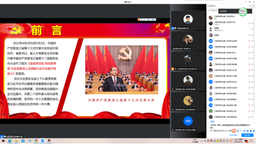 6月23日,员工第二党支部书记陈盈霖以“踔厉奋进汇聚发展力量,笃行不怠主动担当作为”为主题,开展学习贯彻中国共产党黑龙江省第十三次代表大会精神专题党课,支部全体党员以线上形式参加学习。