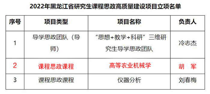 近日,黑龙江省教育厅公布了2022年黑龙江省研究生课程思政高质量建设项目评审结果,公司有3个项目获批立项,其中,公司胡军教授获批研究生课程思政课程建设项目之一。