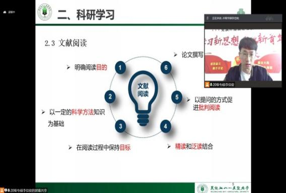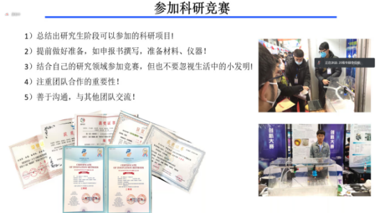 王洪超结合自身经验,强调了阅读文献在研究中的重要性,发表高水平论文的前提需要对研究领域有深刻的理解、拥有扎实的专业基础和大量文献阅读的积累,同时在科研学习方面应敢于想象、大胆创新,不断寻找创新点。在学习过程中,要积极参与学科竞赛,不断提高团队协作能力、创新思维能力和创新实践能力。他鼓励大家要尽早确定研究方向,做好研究生生涯规划,在专业领域创造更多科研成果。