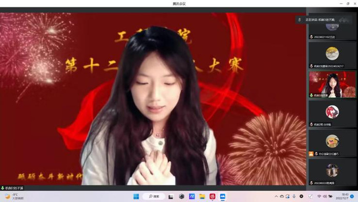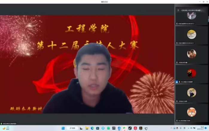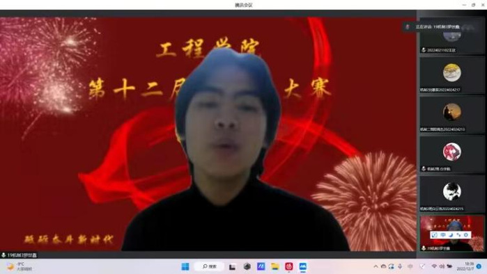 比赛开始时,选手们从容自信,尽显主持功底,表现出昂扬奋进的斗志和灵活的应变能力,展现出工程学子的精神风采。本次比赛总共分为两个环节。第一环节为选手自我介绍,第二环节为朗诵党的光荣历史。选手清楚的介绍了个人基本信息并用铿锵有力的声音讲述了革命先行者的不朽事迹,展示了作为新时代学子不俗的精神风貌,表达自己对党的热爱之情。