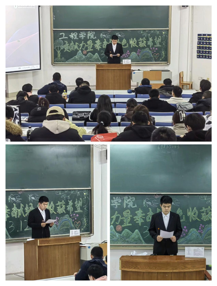 习近平总书记强调:“绿水青山就是金山银山”这一论述中,生动揭示了绿色发展理念的科学内涵。为在广大青年学子心中树立“绿水青山就是金山银山”意识,建立生态文明的观念,学院举办“贡献力量,奉献绿色,收获希望”主题植树节讲座活动。