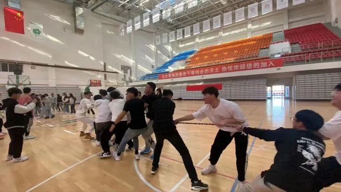 游戏规则:每个组织需要派出男生7人,女生3人进行拔河,一局定胜负,失败则会被淘汰,胜利的一方将会进行下一回合的比赛,最终角逐出胜利者。