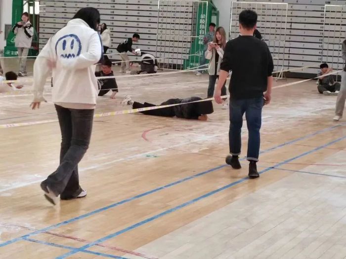 游戏规则:每个组织派两人充当时钟,派五人取物,游戏开始时,时钟需要进行转圈,即为计时开始,二位“时钟”可以进行交替,若“时钟”倒下,则为计时停止,计时期间,五个取物选手需要尽可能快地取出大量物品,一次最多取一物品,计时结束后,哪一组织取出物品多即为胜利。