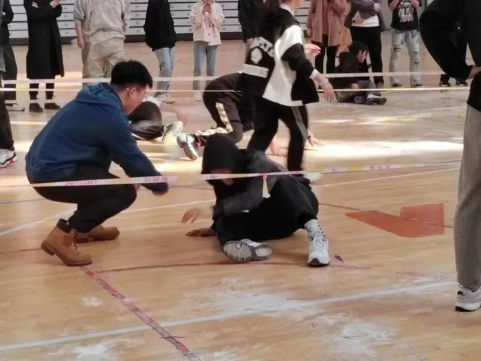 游戏规则:每个组织派5人,游戏开始时会播放音乐,参赛者当听到音乐停止时三秒后准备起跳拍照,各参赛者尽力使自己的面部露出,可以互相遮挡干扰拍照。拍照结束后,在区域内且照片中露出面部的成员即可进行下轮比赛,未达到标准则淘汰,最后一位则达到出彩,按照淘汰顺序,最后三位为第一名,第二名,第三名。