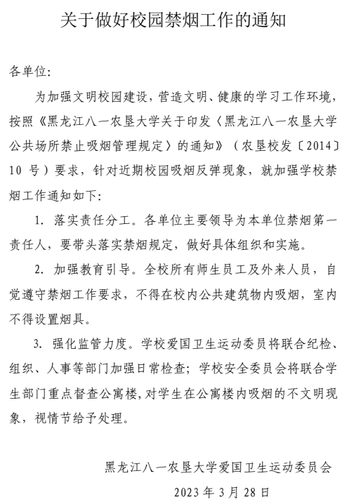 关于做好校园禁烟工作的通知