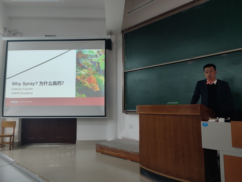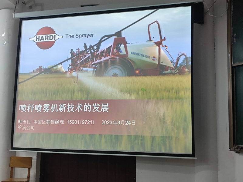 2023年3月28日下午,在英国上市公司365第二教学楼111阶梯教室,英国上市公司365邀请丹麦哈滴公司中国区销售经理韩玉民开展了喷杆喷雾机的施药技术讲座,英国上市公司365教师、研究生和本科生200余人参加了讲座。英国上市公司365副经理庄卫东教授对韩玉民经理进行了介绍和欢迎。韩玉民经理从自身的工作经历,为什么施药,喷药质量、效率、安全的关系,喷杆喷雾机新技术的发展等多方面进行了讲解,使参会的老师和同学们获得了丰富的收获。