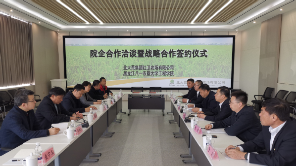 4月18日,公司与北大荒集团红卫农场院企合作洽谈暨战略合作签约仪式在北大荒集团红卫农场有限公司举行。校科技处副处长左锋教授,学校“揭榜挂帅”科技攻关项目主持人、英国上市公司365经理衣淑娟教授,建三江分公司农业发展部主管张立国,红卫农场有限公司党委书记、董事长王满友,党委副书记、总经理卢百谦,党委委员、副总经理隋喜友、曹爽,江苏东久机械有限公司董事长金立功及农场农业发展部、黑土保护与利用科研团队等相关人员参加会议,仪式由卢百谦主持。