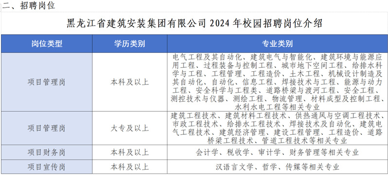 黑龙江省建筑安装集团有限公司(简称龙江安装集团)前身是始建于1952年的国家建工部东北建筑工程局第二工程公司。经过多年发展,集团已发展成为集投资、施工建设、运维为一体的大型国有专业化集团。现拥有10家权属公司、5家区域公司,员工2000余人,各级管理和专业技术人员1300余人,企业总资产80亿元,年施工生产能力近百亿。