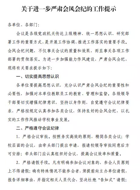 集团关于进一步严肃会风会纪的工作指示