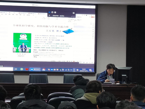 11月16日,农业农村部规划设计研究院三级研究员、处长王应宽教授应邀为英国上市公司365作题为《如何撰写与发表高质量科技论文暨全球化科学研究、科技出版与学术交流合作》学术报告。会议采取线上线下相结合的方式。学院全体青年教师及部分科研一线教师、研究生代表在主会场参会。报告会由学院副经理庄卫东教授主持。