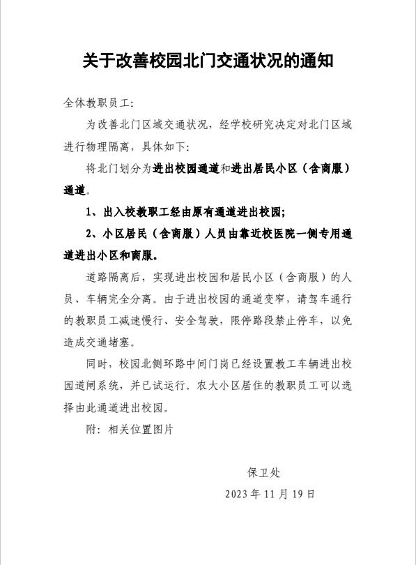 关于改善校园北门交通状况的通知