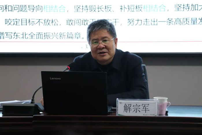 会上,解宗军从深刻认识习近平总书记视察黑龙江、擘画新时代新征程全面振兴宏伟蓝图的重大里程碑意义,深刻领会习近平总书记重要讲话重要指示的丰富内涵和实践要求,坚决贯彻落实习近平总书记重要讲话重要指示精神,奋力开创学校高质量发展新局面四个方面进行了宣讲。