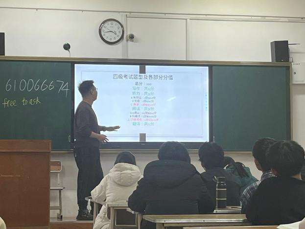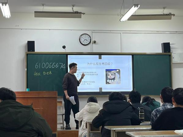随着铃声的响起,优秀的学长走近教室,指导公司学子如何备战四级考试,使同学们更加明白自己复习方向。在学长的讲解中,同学们更加清楚的了解四级考试应如何准备。学长用丰富的经验和深厚的知识为大家指点迷津,耐心地解答问题,鼓励大家不要害怕四级,要有信心和勇气去面对挑战。