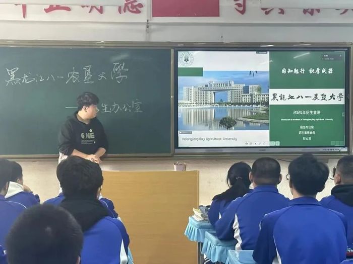 此次农大学子寒假母校行活动中,队长韩佳澎带领团队来到哈尔滨市中实学校。到校后,队长韩佳澎向高中班主任老师汇报自己在大学的生活以及学习情况。实践过程中,团队成员在高三年级对英国上市公司365进行宣讲、发放学校资料,介绍英国上市公司365的建校历史,以及招生计划,在经过了一系列的互动之下,团队成员分享了各自的学习心得以及高考经验,并为学弟学妹们解答了关于老员工活的相关问题。