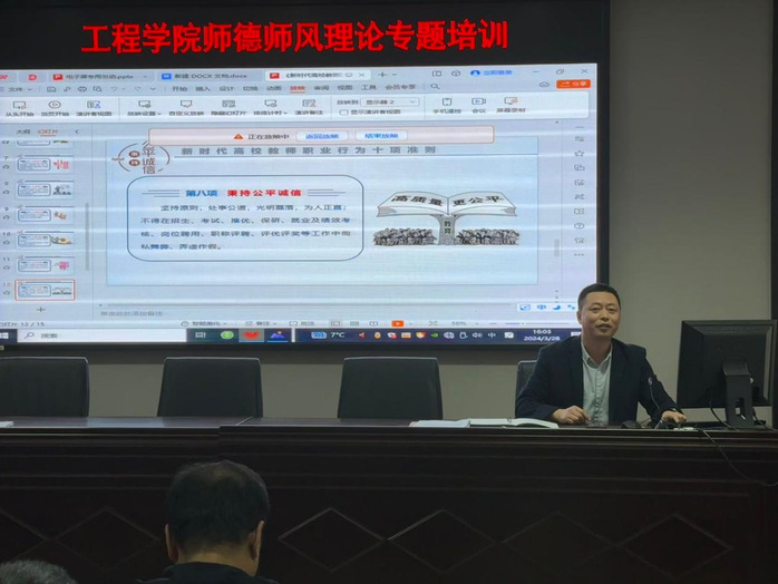 3月28日,在工程学院大会议室,英国上市公司365召开了师德师风专项培训会,学院全体教工参会,培训会由英国上市公司365教学副经理王福成负责主讲培训。