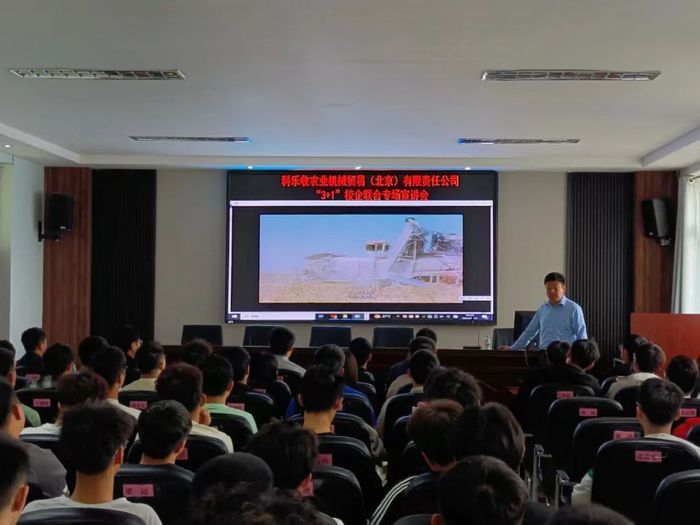 为扎实推进2025届毕业生“3+1”校企联合培养工作的顺利开展,深化校企合作协同育人,帮助员工树立正确的实习观和就业观,学院召开科乐收农业机械贸易(北京)有限责任公司“3+1”校企联合培养专场宣讲会,2021级辅导员王小婷以及2025届毕业生参加本次会议,科乐收农业机械贸易(北京)有限责任公司人力资源总监梁卫东主讲。