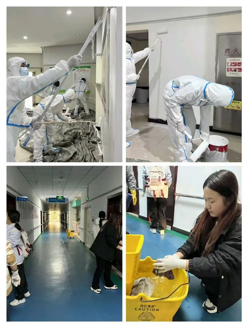 随后,志愿者们在工作人员的带领下一起打扫福利院卫生,志愿者们认真负责的粉刷墙壁,擦拭门窗、扶手等位置,为老人们营造了干净舒适的生活环境。