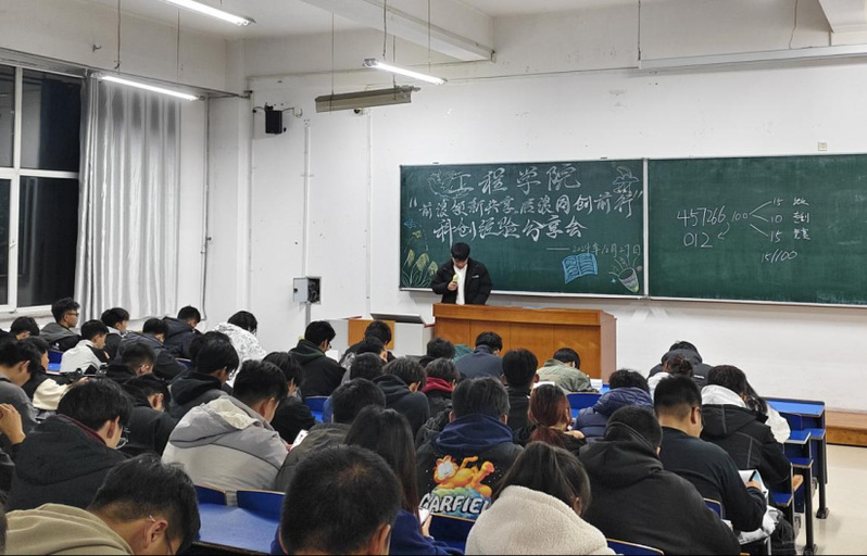 活动现场,分享会邀请到了来自农业机械化及其自动化专业的张德瑞和陈建华两位保研学长,他们结合自己的亲身经历,为在场的同学们传授了竞赛心得、学习方法、团队协作等方面的经验。