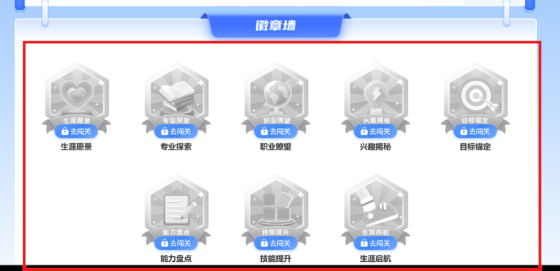 4)点击对应徽章进行生涯闯关,徽章点亮表示闯关完成