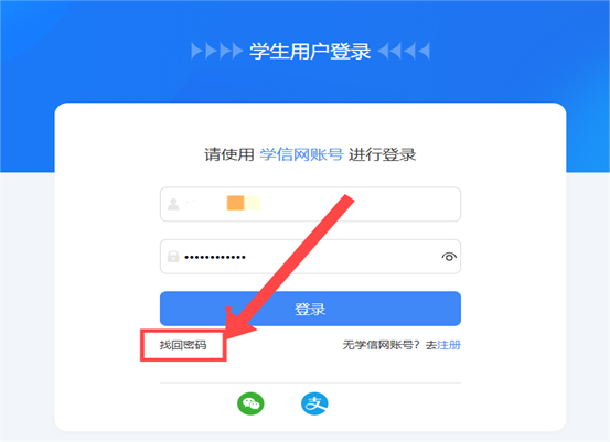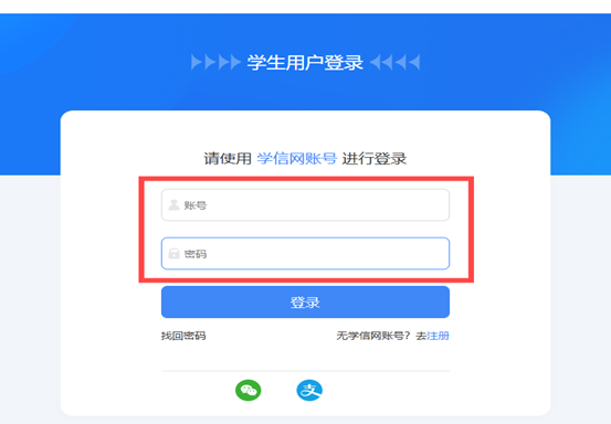 3.输入学信网账号密码,若忘记账号密码可点击下方找回密码,进行密码找回。